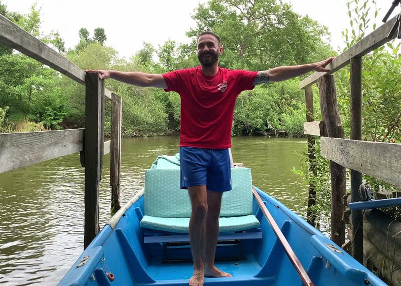 Effectivement, notre batelier bien musclé nous emmène dans sa galupe pendant 7 kms au fil de l'eau dans un cadre de verdure magnifique pour pouvoir rester